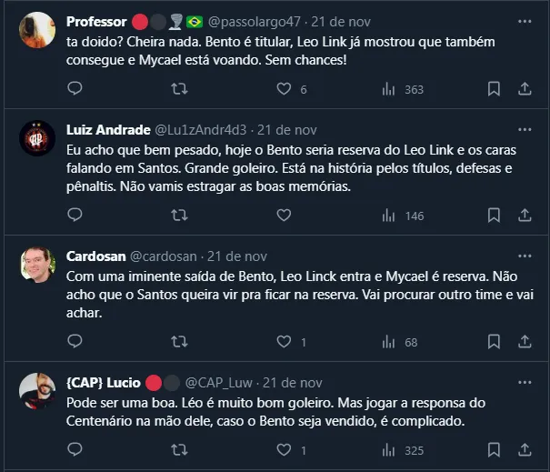 Isto é, o ex-clube do arqueiro poderia abrir as portas para o retorno do arqueiro bicampeão da Copa Sul-Americana. Vale frisar que, caso Bento realmente vá para o futebol da Europa na próxima janela de transferências, a negociação pode esquentar ainda mais.