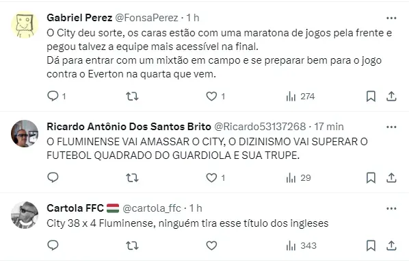Com o triunfo, o Manchester City agora enfrenta o Fluminense na decisão que acontecerá na próxima sexta-feira (22), às 15h (horário de Brasília). Enquanto o Urawa Reds enfrenta o Al Ahly na disputa do 3° lugar, no mesmo dia, às 13h (horário de Brasília).