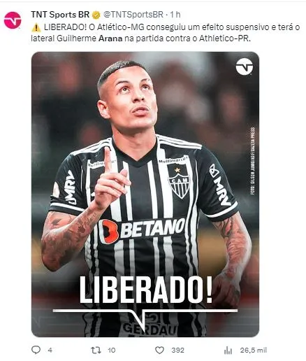 Isso porque o Tribunal concedeu efeito suspensivo para o lateral e ele está livre para atuar na próxima partida do Galo, diante do Athletico-PR, no próximo sábado (2), na Arena da Baixada. As novas decisões do STJD não param em Arana e Scolari tem um novo cenário.