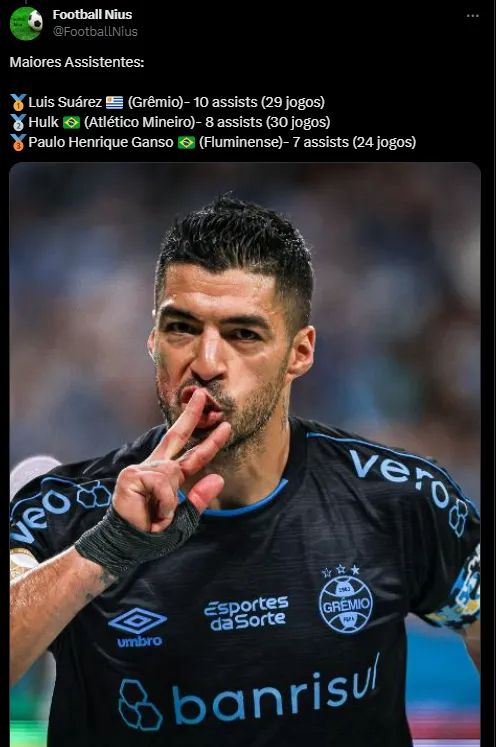 Luis Suárez, o grande artilheiro do Grêmio, contratado para a temporada de 2023, já balançou as redes 14 vezes em 29 jogos.