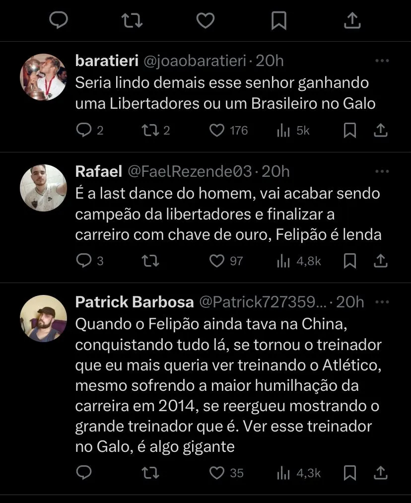 Com a declaração de Felipão, a diretoria atleticana, juntamente com Rodrigo Caetano terão que realmente focar em reforços e também em colocar nomes em pautas.