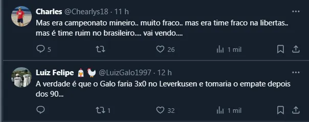 Isto é, diante de um dos adversários mais complicados da 3ª fase do torneio, o Galo fará a primeira partida diante do seu torcedor na Arena MRV. Sobre a melhora do time desde que Gabriel Milito assumiu, Mariano Soso, técnico do Leão, deu a seguinte declaração:
