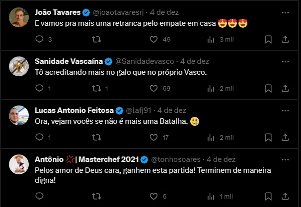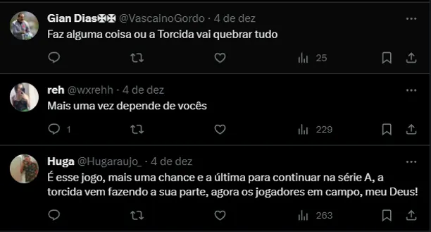 Para animação dos torcedores, na última rodada, o Vasco joga em casa, diante do RB Bragantino. A partida entre as equipes acontece na quarta-feira (6), às 21h30 (horário de Brasília).