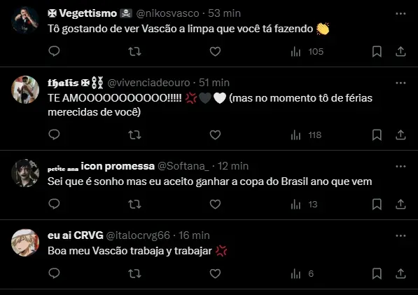 O torcedor do Vasco respira aliviadamente após a permanência na 1ª divisão, mas, para o próximo ano, querem reforços em quase todos os setores do campo. Além de novos nomes, quatro atletas retornam de empréstimo.