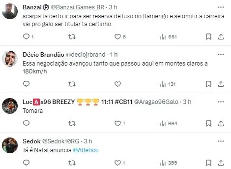 Além da equipe mineira, o Flamengo, Palmeiras e Internacional também sondaram a situação do jogador. O Alviverde tentou repatriar o atleta no início do ano, mas as tratativas não avançaram.