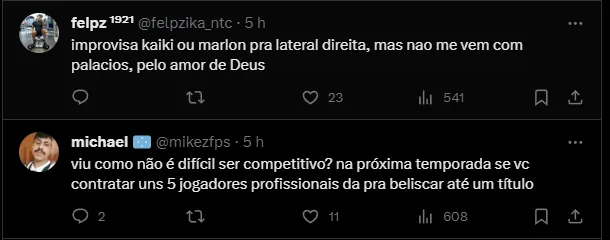 Para garantir a classificação, o clube precisa vencer os dois jogos e torcer para uma combinação de resultados. Apesar disso, a torcida quer esquecer a temporada de 2023 e iniciar 2024 com um novo planejamento.