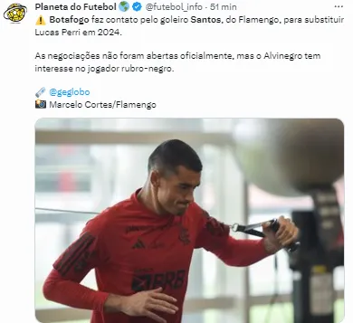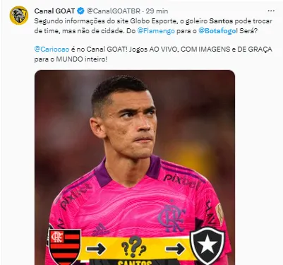 Trata-se de Santos, que chegou ao Flamengo depois de se destacar no Athletico. Ele foi titular e campeão da Copa do Brasil e da Libertadores de 2022, mas neste ano, está perdendo espaço no Rubro-Negro Carioca e já virou terceira opção.