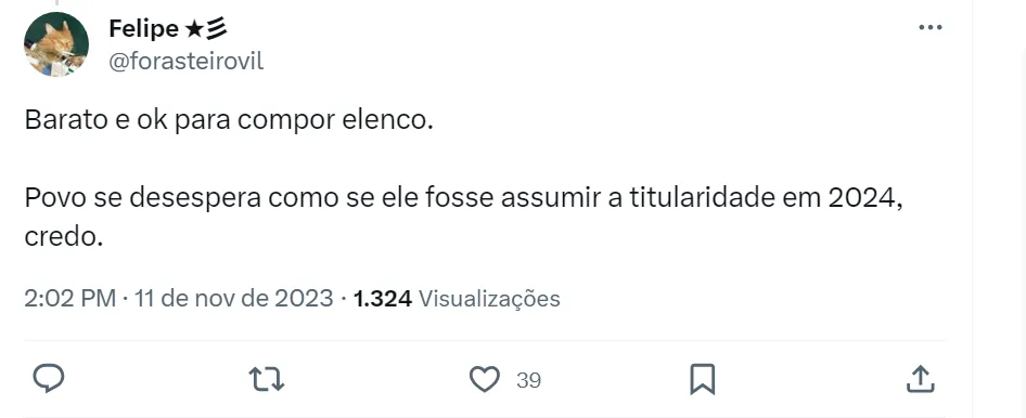 No canal do TF, ele informou que a tendência é o Alvinegro de General Severiano aceitar pagar US$ 1 milhão (R$ 4,9 milhões na cotação atual) para adquirir 60% dos direitos econômicos do atacante.