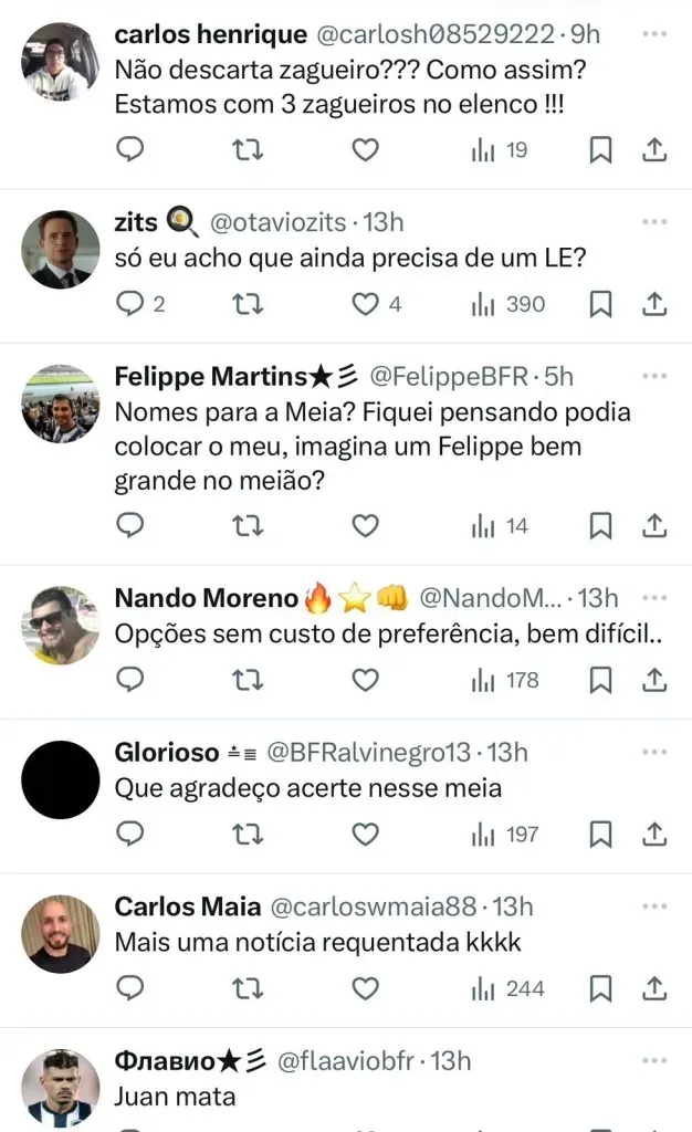 O torcedor do Botafogo também poderá ter novidades em breve no ataque. Isso porque segundo o portal Fogão Net, Textor também observa atentamente o mercado em busca de um camisa 9. Porém, um jogador só irá desembarcar em General Severiano se for uma grande oportunidade de mercado.
