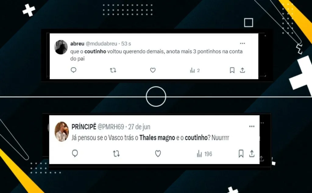 Neste sábado (13), Philippe Coutinho foi recebido pela torcida em São Januário. E o ponta-esquerda Thales Magno foi sincero sobre o assunto.