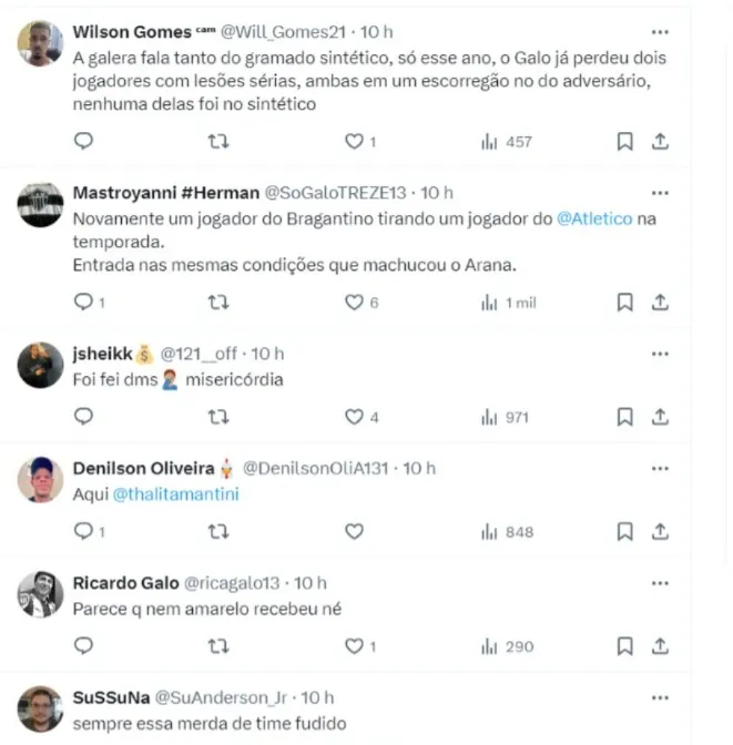 O lance em questão aconteceu nos primeiros minutos do segundo tempo, quando o Galo vencia por 2 a 1. O zagueiro Igor Rabello foi a opção do técnico argentino Gabriel Milito para substituir Zaracho.
