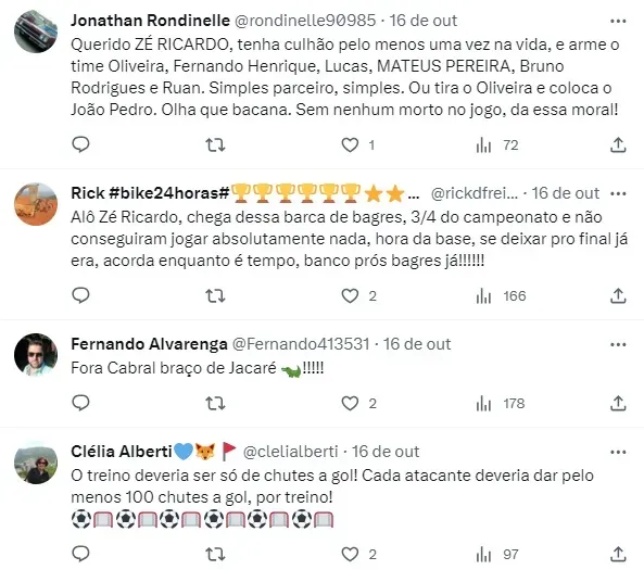 Pra piorar a situação, o Cruzeiro tem 04 jogadores “pendurados” para o jogo contra o Flamengo nessa quinta-feira (19). São eles: os laterais Palacios e Marlon e os atacantes Arthur Gomes e Wesley. Todos eles estão com dois cartões amarelos na bagagem e, no caso de tomarem mais um contra o Mengão, ficam suspensos para o jogo seguinte.