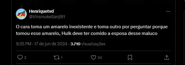 O cara toma um amarelo inexistente e toma outro por perguntar porque tomou esse amarelo, Hulk deve ter comido a esposa desse maluco.