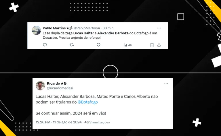 Os torcedores do Botafogo opinaram que não dá para contar com Lucas Halter, Alexander Barboza e Mateo Ponte na defesa e estão cobrando contratações para a zaga e a lateral.