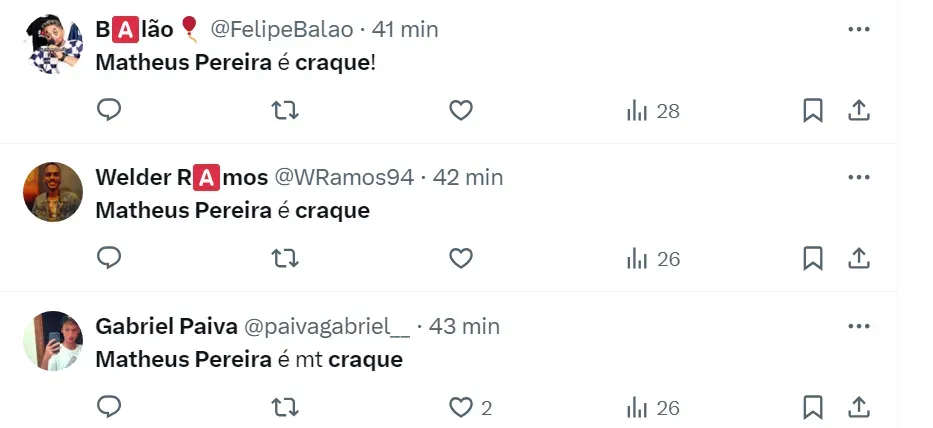 Contra os goianos, o meio-campista fez o gol da vitória e ainda deu três passes decisivos, segundo o Sofascore. Na rede social do X, os torcedores cruzeirenses rasgaram elogios ao jogador e decretaram que ele é ‘muito craque’.