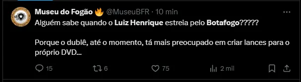 Principal e mais cara contratação na última janela de transferência, Luiz Henrique foi criticado durante o confronto da copa continental pelos torcedores: “alguém sabe quando ele estreia? Porque o dublê, até o momento, está mais preocupado em criar lances para o próprio DVD“.