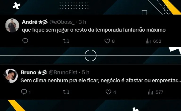“Pra mim ele acaba de entrar na lista do Arão, Clayton e Renato Gaúcho. O que ele fez não tem nome. Ele sabia da importância desses jogos de agosto pro Botafogo e foi covarde e mau caráter com todo o clube e seus colegas. Não pode ceder um milímetro pra ele”, escreveu outro botafoguense.