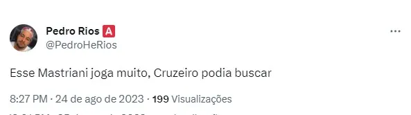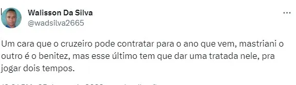 “Um cara que o Cruzeiro pode contratar para o ano que vem, Mastriani. O outro é o Benítez, mas esse último tem que dar uma tratada nele, pra jogar dois tempos”. “Cruzeiro podia catar esse Mastriani do América, matador”, destacaram alguns cruzeirenses.