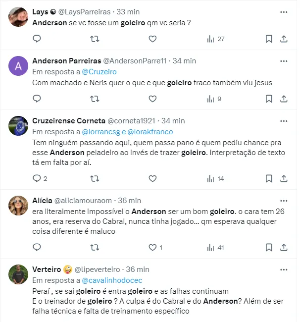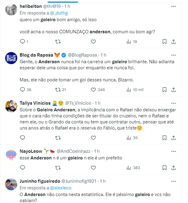 Entre alguns pedidos pela titularidade imediata de Gabriel Grando, foram muitas críticas pela falha do goleiro Anderson no clássico deste sábado. Veja as opiniões de cruzeirenses: