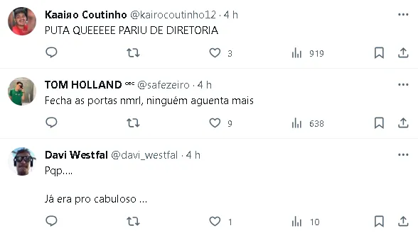 É digno de nota ressaltar a reação da torcida nas redes sociais, que se mostra pessimista mesmo com a mudança de técnico, expressando dúvidas sobre uma possível melhora no desempenho do time.