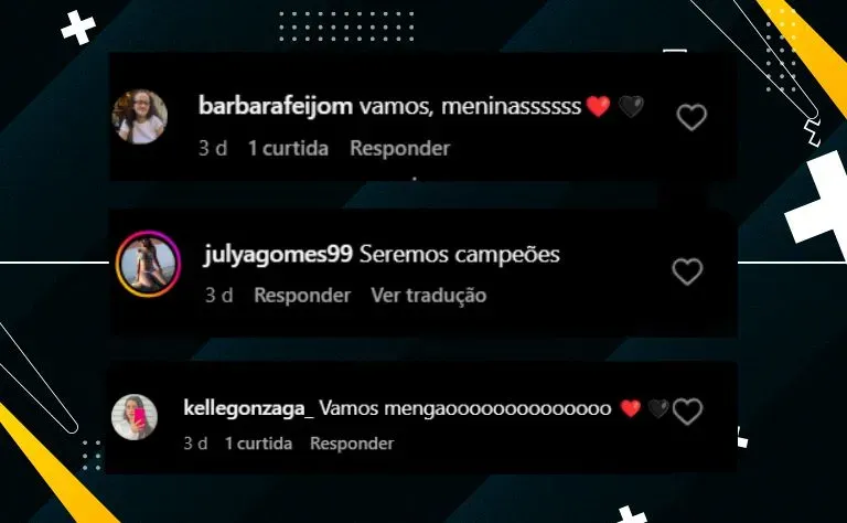 Nas redes sociais, a confiança da Nação está em alta. Comentários de apoio inundam as páginas dedicadas ao Flamengo Feminino, com mensagens de incentivo e otimismo.