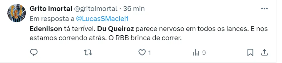 No revés para o Red Bull Bragantino, Renato Portaluppi usou o meio-campista pelo lado direito do campo e não funcionou. Os torcedores gremistas questionam o motivo do treinador usar o jogador na ponta.