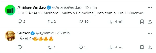 Lázaro recebe elogios da torcida do Palmeiras após gol