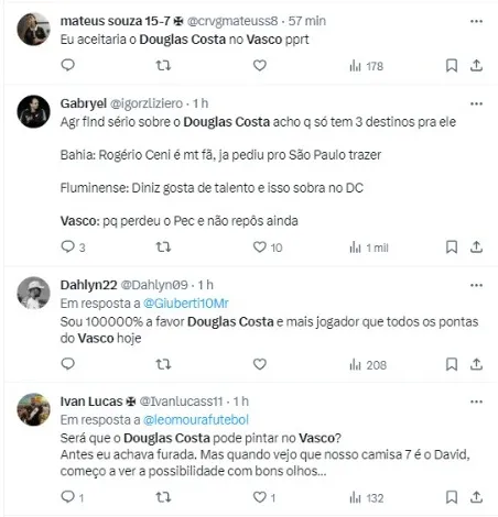 Importante destacar que não existem negociações em andamento para que o craque venha jogar no Vasco, mas ficou bem claro que, se dependesse dos torcedores, ao menos uma consulta seria feita.
