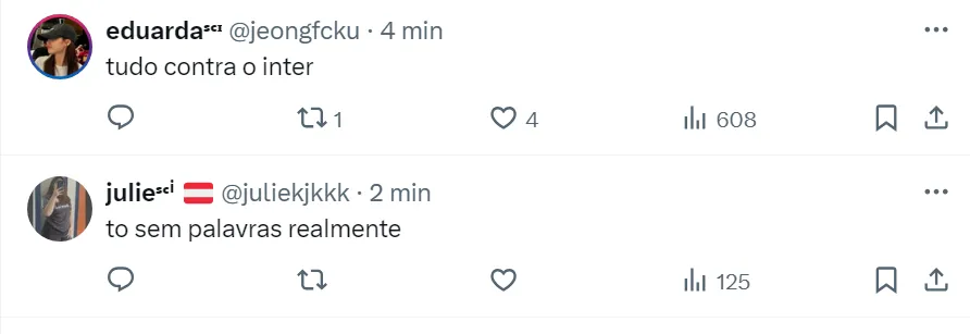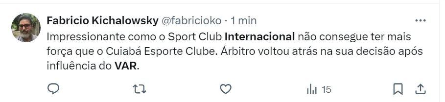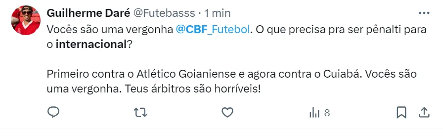 Os torcedores do Inter consideram a decisão de Anderson Ribeiro Goncalves ‘uma vergonha’ e acreditam que o time gaúcho foi prejudicado na partida. Outros colorados aindam criticaram a CBF pela arbitragem do Brasileirão.