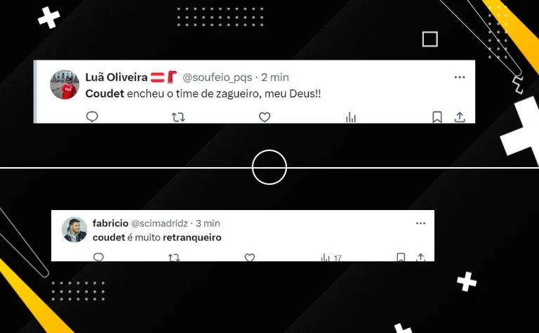 Além disso, o argentino foi comparado com outro treinador: “Coudet está com o Mano Menezes incorporado”, disse um torcedor na rede social do X. Apesar de muitas vezes criticados, o treinador conta com o apoio do ídolo Rafael Sóbis.