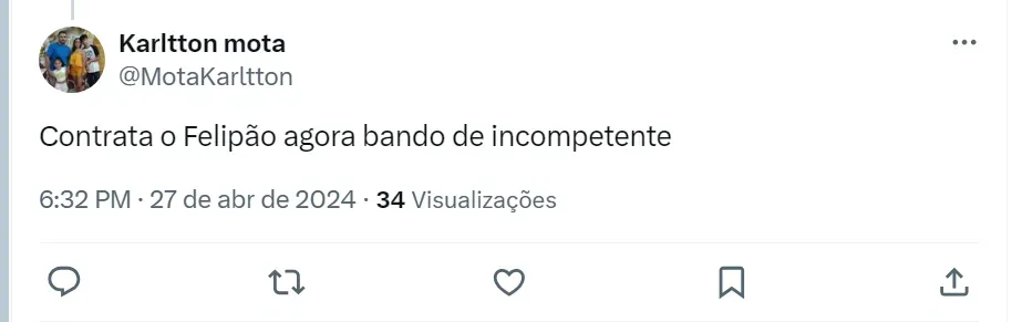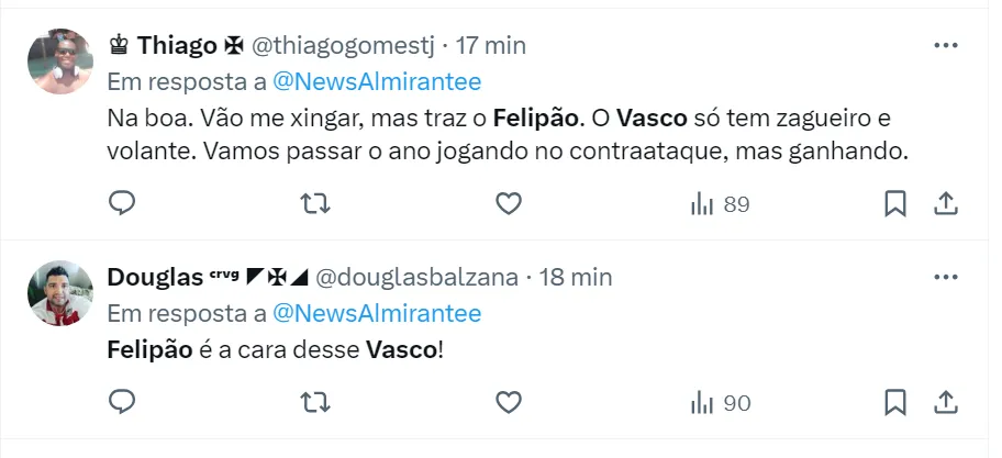 Para o lugar do técnico argentino, os torcedores do Vasco pedem no X (antigo Twitter) a contratação de Felipão, que está livre no mercado desde que foi demitido no Atlético-MG. O profissional de 75 anos nunca trabalhou no futebol do Rio de Janeiro.