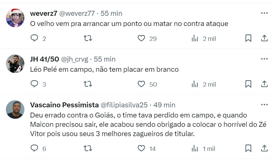 Reação da torcida do Vasco na web