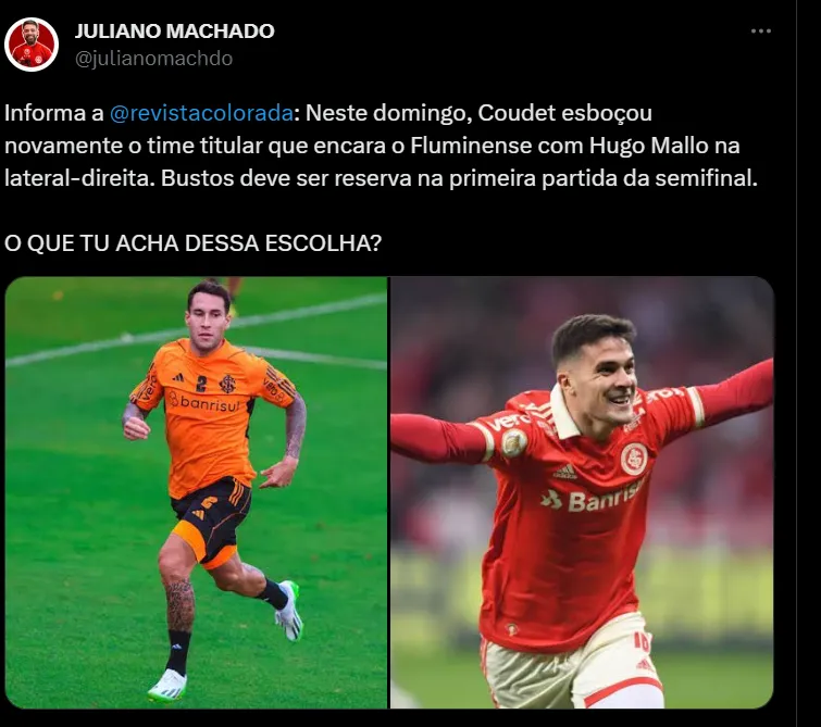TUDO é Libertadores, VAZOU escalação para jogo HISTÓRICO: Bustos recebe BOMBA no Inter antes de duelo contra o Fluminense