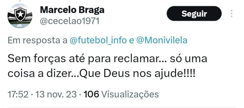 “Passa muito pela parte mental, esse time voltar a ter confiança, e o Tiago pode ajudar à medida que ele colocar coisas novas. O Botafogo, apesar de tudo, é o único que ainda só depende dele, é um ponto que conta a favor”, completou.