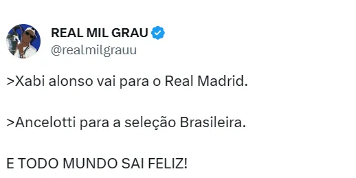Ainda falando de Ancelotti, um velho conhecido acredita que Carlo seguirá no comando dos Blancos e que somente um louco deixaria um dos maiores clubes do mundo para assumir a Seleção Brasileira.