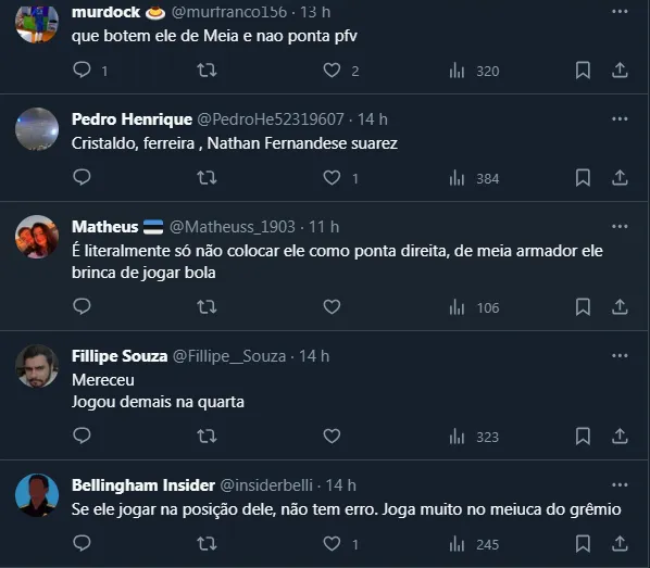 Quer dizer, em algumas partidas recentes, Portaluppi vinha o escalando aberto, o que prejudica muito o futebol do meia. Como ele deve retornar ao time titular, os gremistas resolveram fazer um único pedido ao Renato.