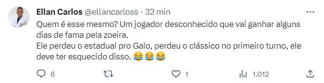 A atitude revoltou os torcedores nas redes sociais. Alguns apontaram que Machado é um jogador desconhecido, e caso saísse na rua, ninguém iria se ofender com a brincadeira porque não o reconheceriam. Outros disseram que o atleta deveria mudar de profissão e partir para o humorismo. Confira abaixo mais destes comentários.