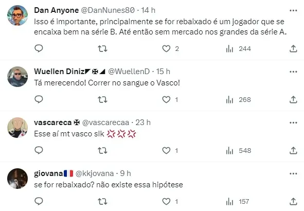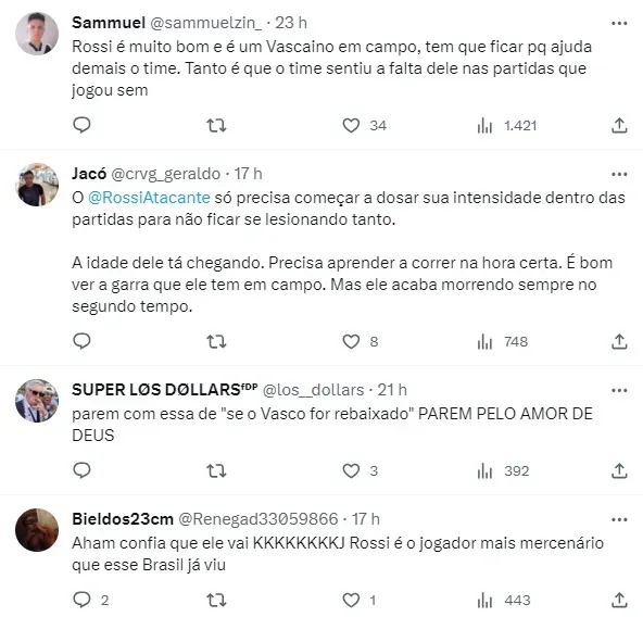 Apesar das preocupações existentes em 2023, o Vasco já pensa também no próximo ano. Dessa maneira, o objetivo do Gigante da Colina é renovar com o atacante Rossi por mais uma temporada, ou seja, até 2024. Caso o gigante carioca permaneça na Série A, a renovação seria inclusive automática, visando começar o próximo ano com um bom plantel.