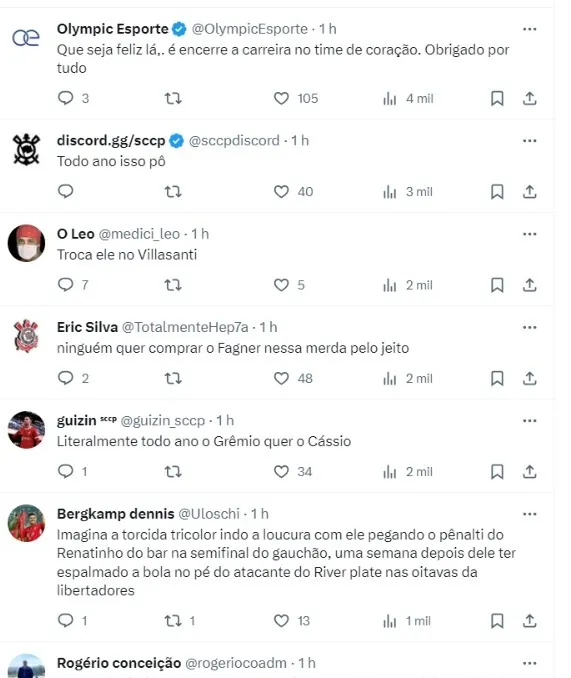 O arqueiro tem contrato com o Corinthians até dezembro de 2024 e ainda não foi procurado pela diretoria alvinegra para renovar o vínculo. O goleiro, inclusive, deve ser desfalque para o Timão no jogo contra o Coritiba, nesta quarta-feira, no Couto Pereira.