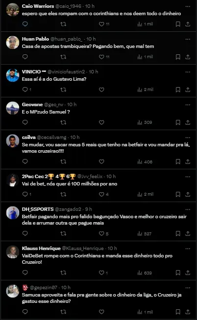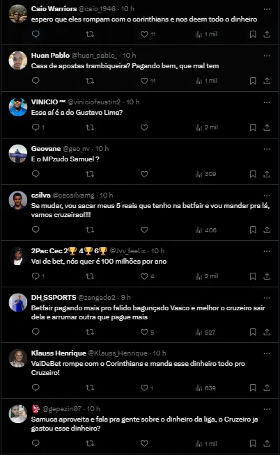 As informações do Deus me Dibre são de que a VaiDeBet, que também patrocina o Corinthians, teria interesse em expandir e ir para o time mineiro também.