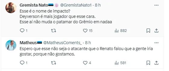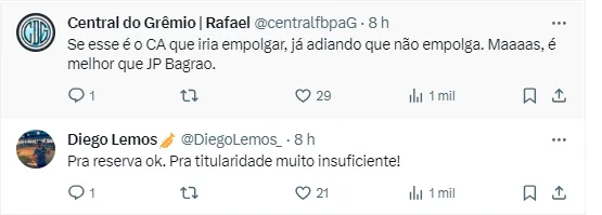 Os adeptos do Clube Gaúcho não gostaram nada da atuação da equipe comandada por Renato Portaluppi. O atacante venezuelano Yeferson Soteldo foi um dos poucos se salvou e acabou recebendo elogios.