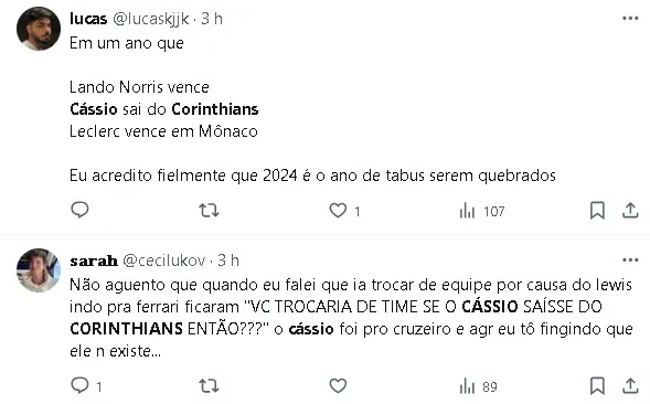 “Para mim, ele é um dos maiores ídolos da história do Corinthians. Respeito a decisão do Cássio de buscar novos desafios. A história dele no clube é inapagável. Respeito muito sua escolha e desejo que ele continue brilhando em sua carreira”, declarou Vampeta.