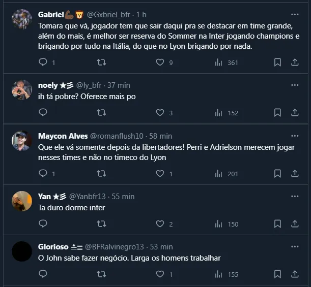 Com isso, como ainda não tem vínculo assinado com os franceses, uma nova proposta da Inter pode pintar nas próximas semanas e mudar o rumo do atleta. Inclusive, o futuro de Perri virou tema entre torcedores do Glorioso.