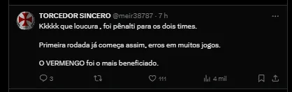 Pelo lado vascaíno, também teve reclamação. O Gigante da Colina questionou a não marcação de um lance em que o zagueiro Rodrigo Ely teria cometido uma penalidade em cima de Galdames. O lance foi decidido no VAR e o árbitro nem foi revisar a jogada.