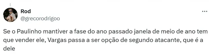 No entanto, segundo Juliano Britto, que cobre o dia a dia do clube gaúcho, a possibilidade do Tricolor investir em Vargas é zero, praticamente impossível algum acordo aconteça entre as partes.