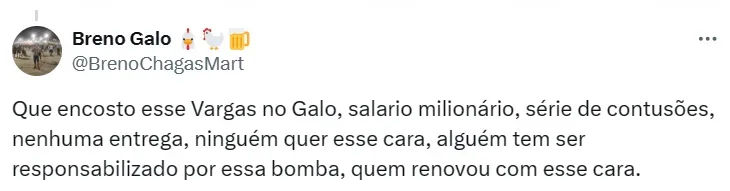 A informação foi dada pelo portal GOAL, que acrescenta mais uma tentativa dos mineiros em ‘se livrar’ de Vargas. Com suporte do estafe do camisa 11, o Atlético oferece o atacante ao Grêmio.