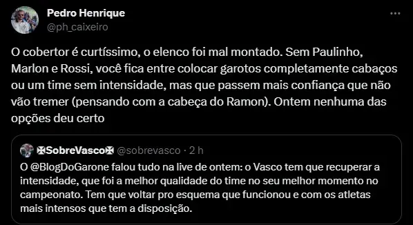 O Vasco também está lidando com a ausência do atacante Rossi, que está se recuperando de uma lesão muscular na coxa direita e não estará disponível nem mesmo para o próximo confronto contra o Cuiabá.