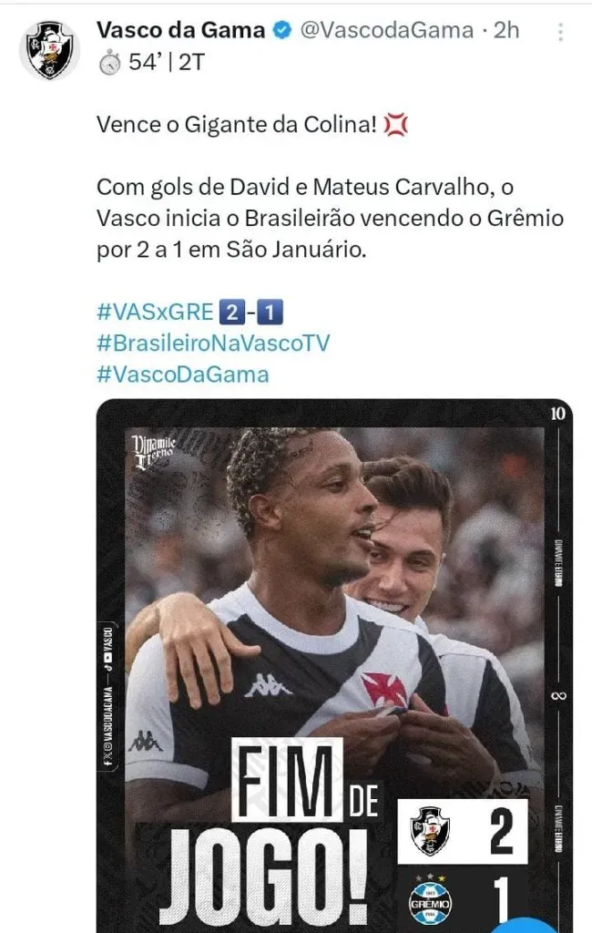 Por fim, Cristaldo e Nathan tentaram e Rodrigo Ely quase empatou. Pelo lado do Vasco, Ryan e Vegetti foram os destaques após o gol tricolor, Mas, a vitória ficou com o time carioca em tarde de homenagem ao ídolo Roberto Dinamite.