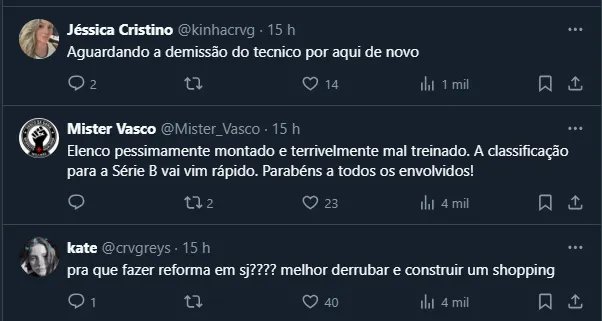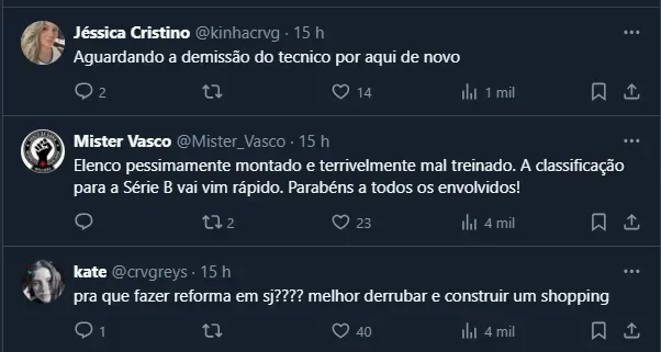 Ao todo, o aproveitamento do Vasco da Gama na atual edição do Brasileirão é de 23%. Por sorte, clubes como Fluminense, Corinthians e Grêmio também passam por um início tenebroso na liga nacional e estão atrás na tabela.