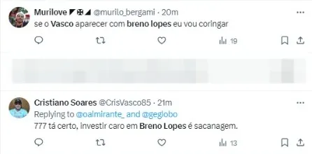 Trata-se de Breno Lopes, do Palmeiras, que nas últimas horas virou assunto internamente. No entanto, a 777 Partners segue se mostrando resistente à indicação do jogador, pedindo mais sugestões para o ataque.